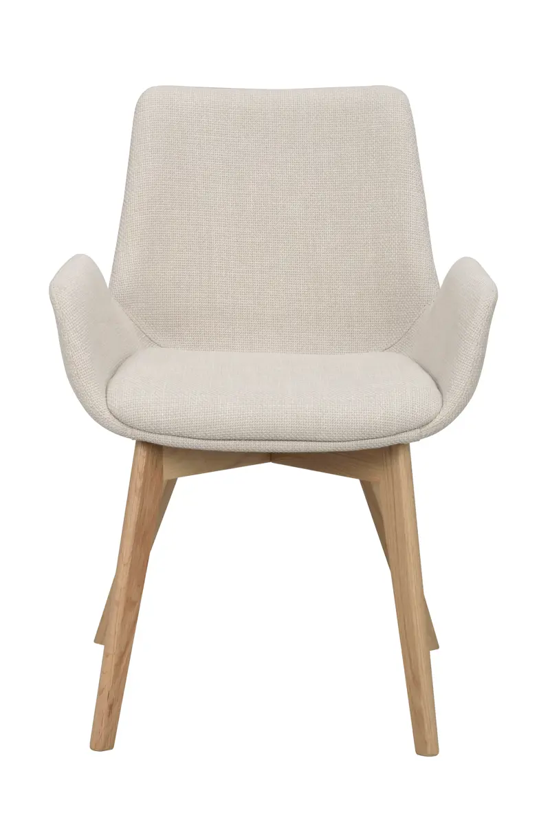 Der Armlehnenstuhl Drimsdale in beigem Stoff mit Eichenholzbeinen ist ein moderner und zeitloser Stuhl mit einem ordentlichen Gestell, das ein gemütliches Sitzen ermöglicht. Mit skandinavischem Design, hoher Qualität und FSC-zertifiziertem Holz ist Drimsdale ein nachhaltiger Armlehnenstuhl. Erhältlich in drei Stoffen und drei Farben für die Beine aus Massivholz. Nur im 2er-Pack erhältlich.