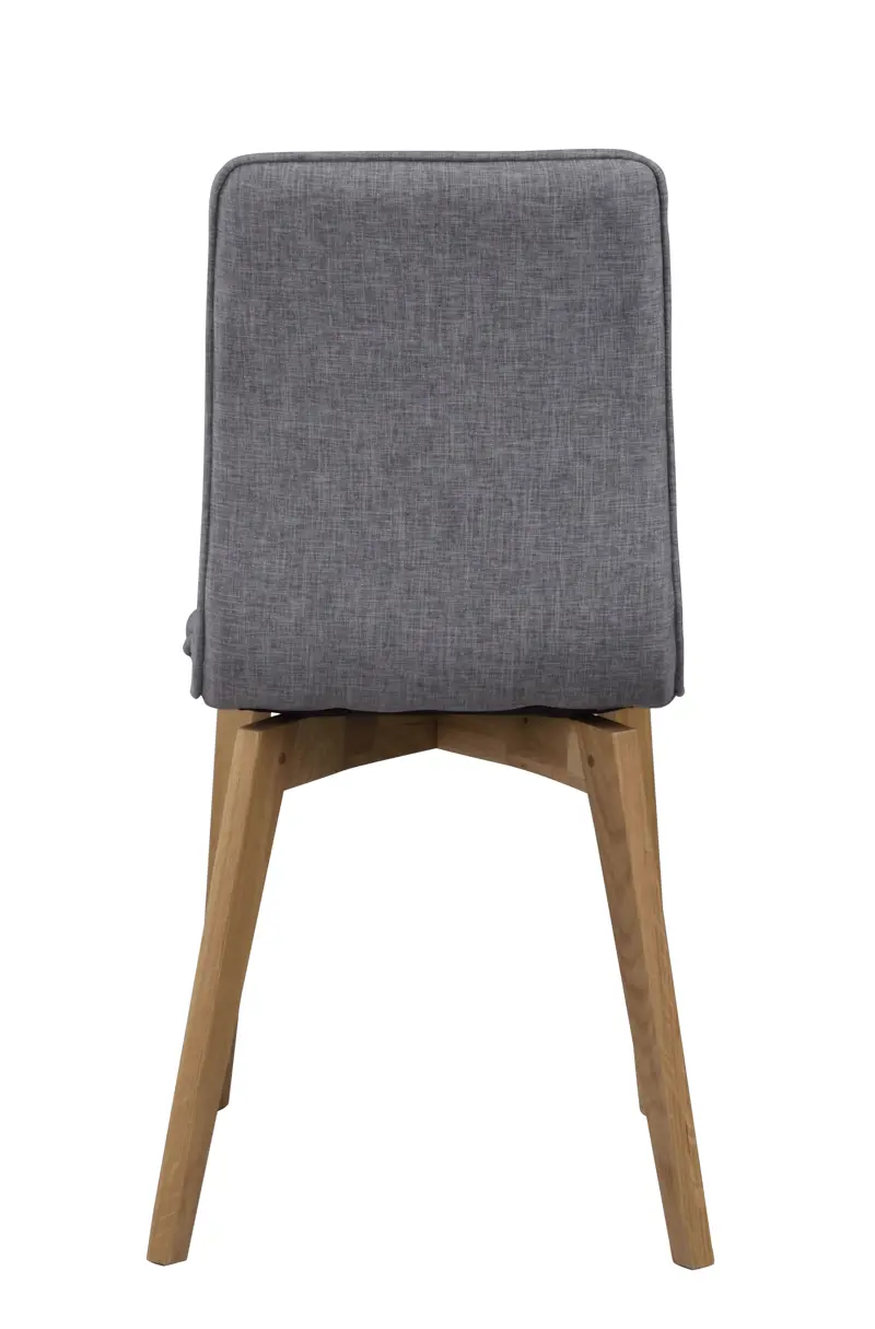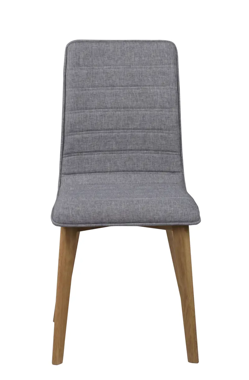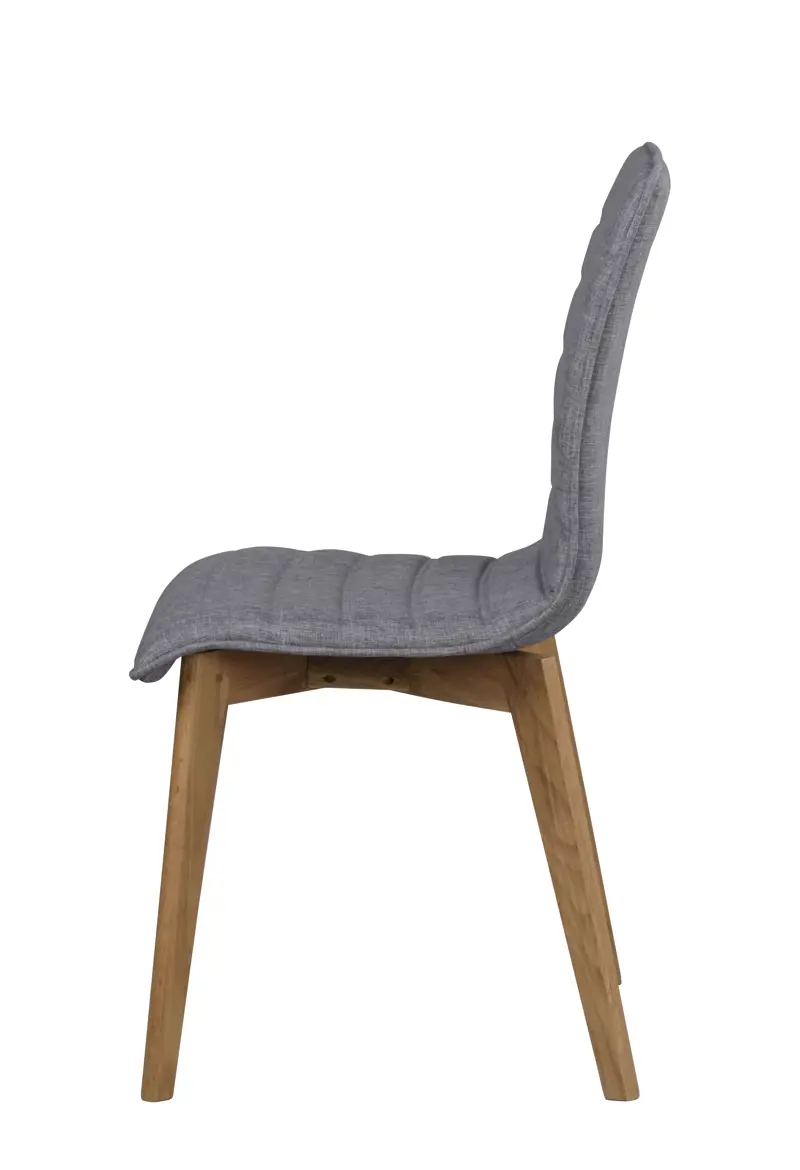 Gracy chair in solid lacquered oak. Upholstered seat in light grey fabric. Sleek and modern chair that suits many styles. The chair is part of our Gracy series. Sold only in 2-packs.