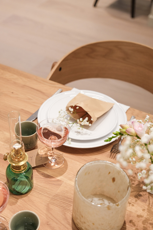 Make your guests feel a little extra welcome with name tags at each place setting, either using their real names or nicknames to make it even more personal. Personal details or small challenges under the plate to be completed during the evening, a handwritten letter, or a simple flower in the napkin makes the table setting and dinner personal. Simple gestures if you want your guests to feel a little extra special.