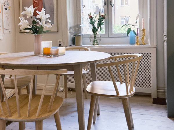 - I'm so happy about our new dining area. The dining area is sacred to us and we spend a lot of time there, so when I found a solid round wooden table that can be expanded when needed, the FILIPPA table was a natural choice. Then I fell in love with the CARMEN chair in whitewashed wood the first time I saw it, so it was natural to choose whitewashed for both the table and chair. SO pleased!