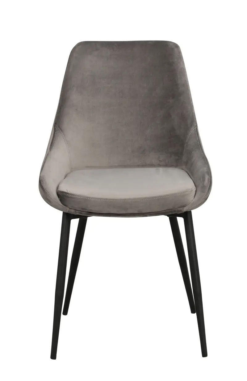 Sierra chair in modern design with cupped seat and back. Seat in gray velvet fabric with high wear level. Stylish legs in black powder-coated metal. The chair is part of our Sierra series and is available in several colors. Sold only in 2-pack.
