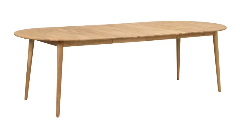 Tyler extra iläggsskiva 40 cm i massiv ek passar till ovalt Tyler matbord i samma färg. Det går att ha totalt 2 st iläggsskivor i bordet där 1 st ingår när du köper bordet. Tänk på att förvara tilläggsskivorna i plant läge i samma rumstemperatur som bordet.