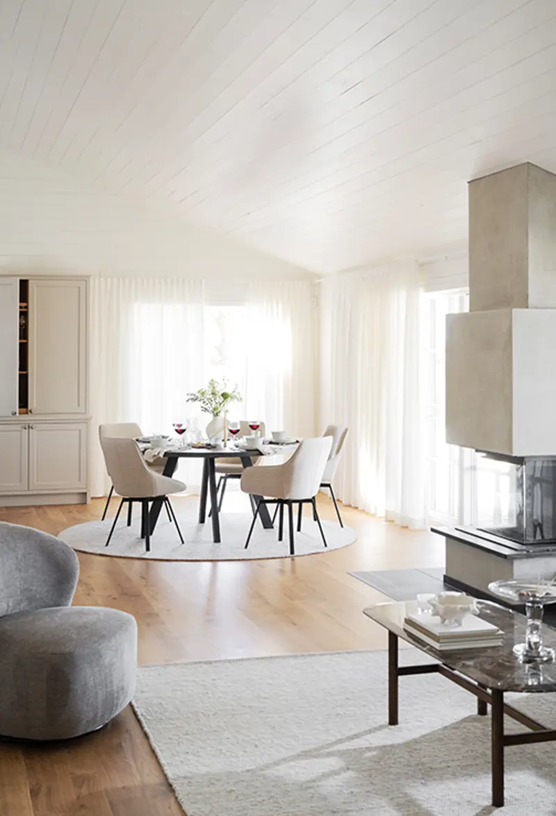 Utgå ifrån golvets underton - om ditt golv har en varm underton är det fint att välja en matta som kompletterar den varma tonen i golvet. Har du ett golv som drar åt kalla undertoner, harmoniserar det garanterat med neutrala toner som beige grått, blått och grönt. Vill du läsa mer om skillnaderna mellan varma och kalla träslag kan du göra det i vårt inlägg som handlar om att kombinera olika träslag.